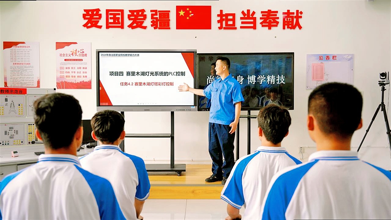 在博爾塔拉職院,像趙文鵬這樣的學生還有很多。通過技能大賽特長班,學生們開始在各類大賽中嶄露頭角。2022-2025年援疆期間,高錦南指導博爾塔拉職院學生參加自治區技能大賽機器人系統集成技術和現代電氣控制系統安裝與調試自治區級比賽,獲得一等獎兩項,二等獎兩項;指導學生參加2022一帶一路暨金磚國家技能發展與技術創新大賽工業機器人數字孿生技術應用技能競賽(高職組中國區決賽),獲得三等獎。