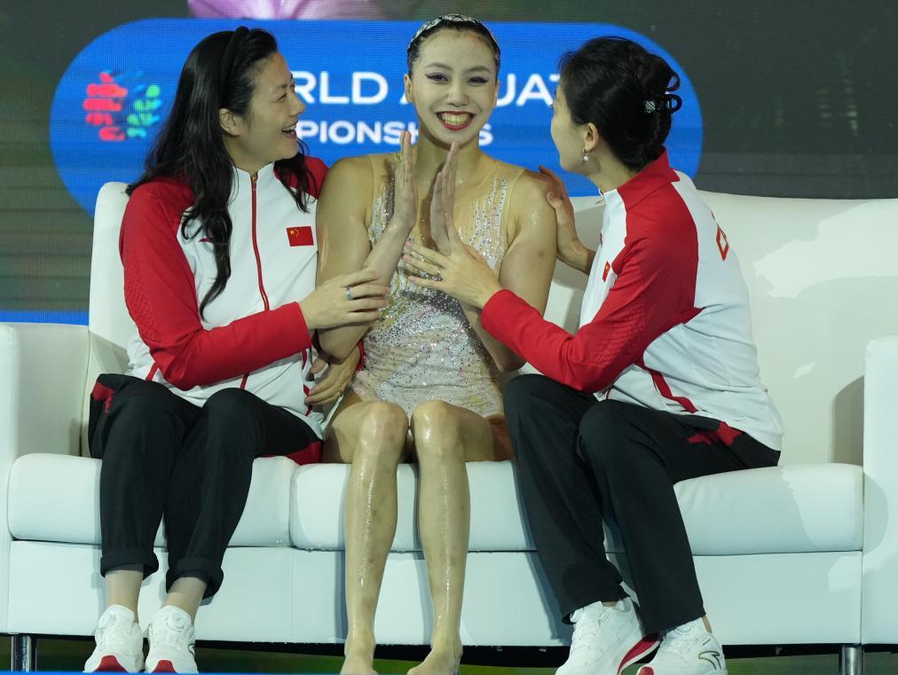 新華社新加坡7月22日電(記者岳晨星、王子江、李嘉)一首《永夜蒼穹》曲畢,最后一位出場的徐匯妍結束了本屆游泳世錦賽花樣游泳女單自由自選的比賽,她緩緩游向泳池邊,等待最終的結果。