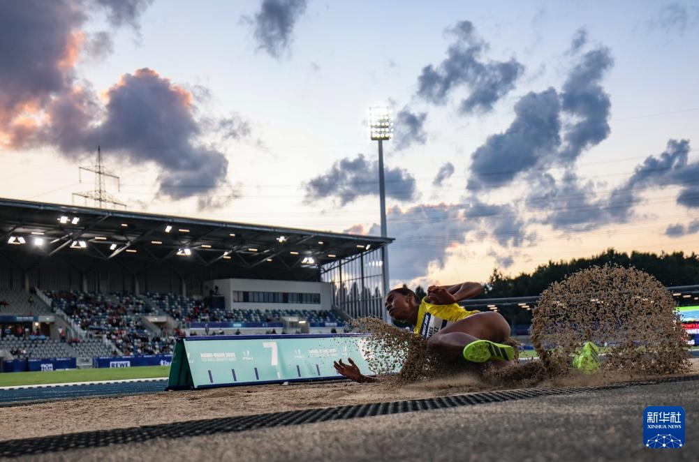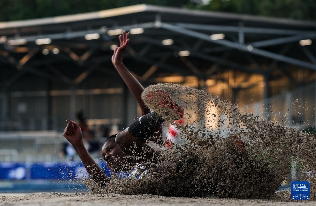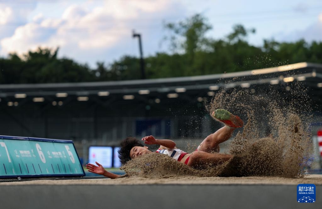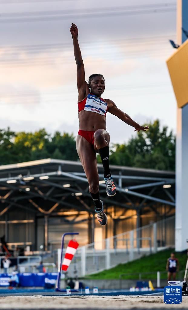 7月22日,葡萄牙選手阿加特·索薩在比賽中。最終她以6米70的成績獲得冠軍。新華社記者 胡星宇 攝