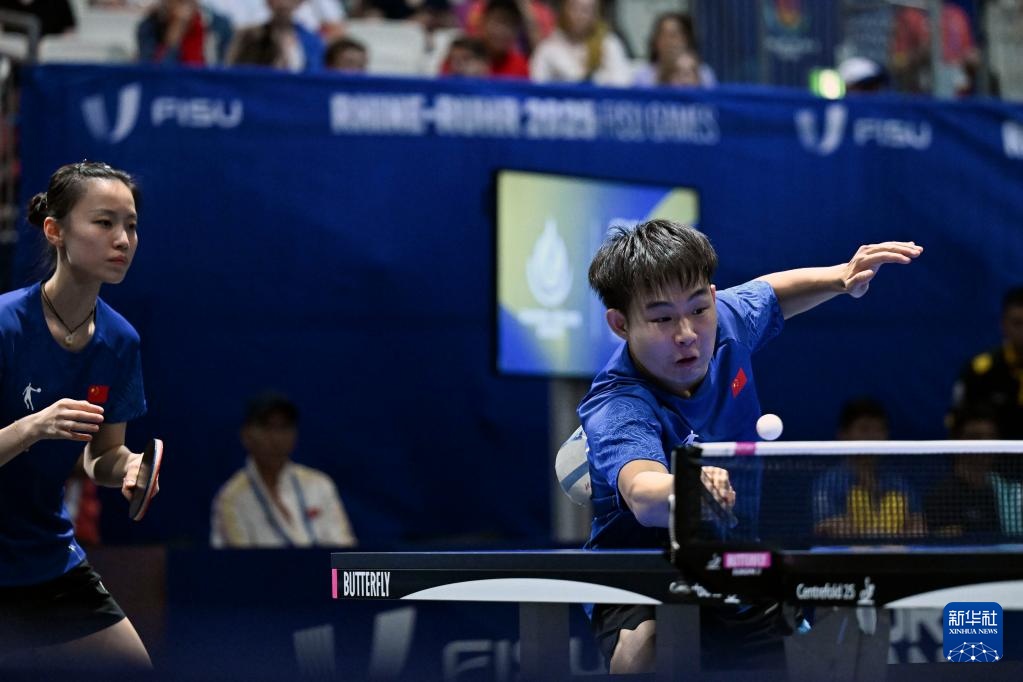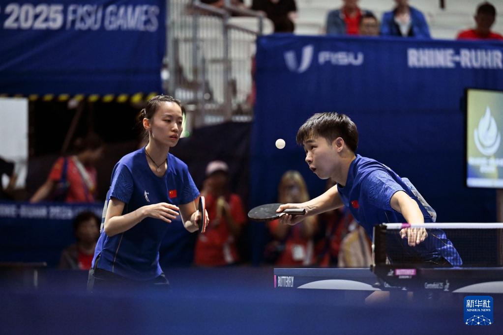 當日,在德國埃森舉行的2025年萊茵-魯爾世界大學生夏季運動會乒乓球混雙四分之一決賽中,中國組合曾蓓勛/韓菲兒4比3戰勝中國臺北組合馮翊新/蔡昀恩,晉級半決賽。
