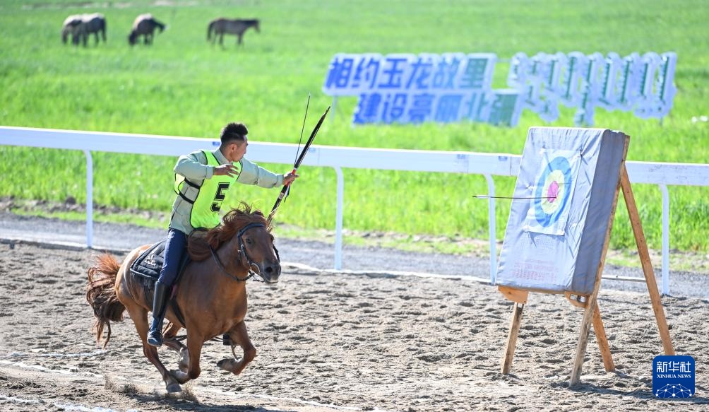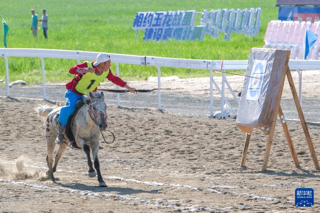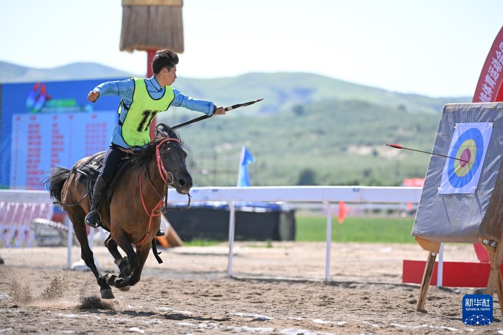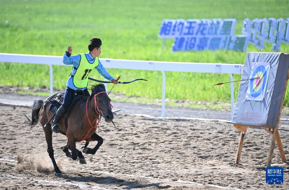7月22日,通遼市代表隊騎手亞輝在比賽中命中靶心。最終,他獲得二等獎。新華社記者 馬金瑞 攝