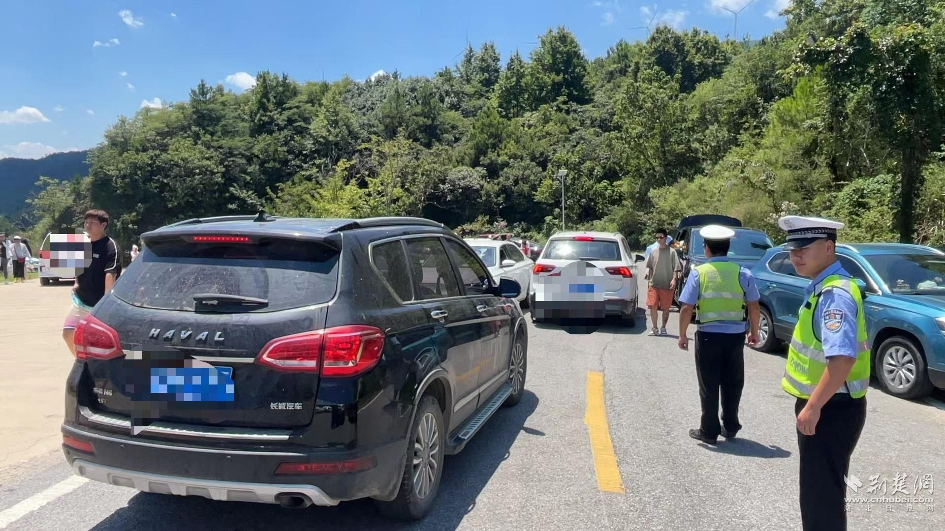 在木蘭天池景區(qū)客流高峰時(shí)期,木蘭中隊(duì)對景區(qū)附近路口進(jìn)行臨時(shí)管控和現(xiàn)場疏導(dǎo),以保證入?yún)^(qū)轉(zhuǎn)彎與直行車輛交織不會造成擁堵。