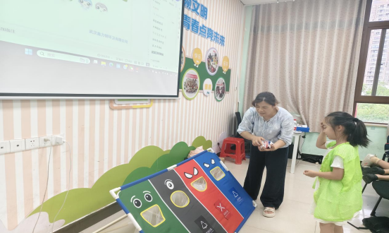 趣味盎然的“垃圾分類大挑戰(zhàn)”點燃全場熱情。孩子們手持寫有各類物品名稱的小卡片,化身環(huán)保小衛(wèi)士,在“可回收物”、“廚余垃圾”、“有害垃圾”、“其他垃圾”四色模擬垃圾桶前認真思考、精準投放。從“舊報紙”到“過期藥品”,從“果皮菜葉”到“破碎陶瓷”,每一次實踐都是對分類知識的鞏固,更是將“無廢”理念內(nèi)化于心的行動宣言。