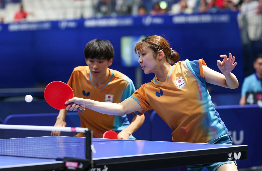 7月22日,日本組合岡野俊介/出澤杏佳(右)在比賽中。新華社記者 張帆 攝