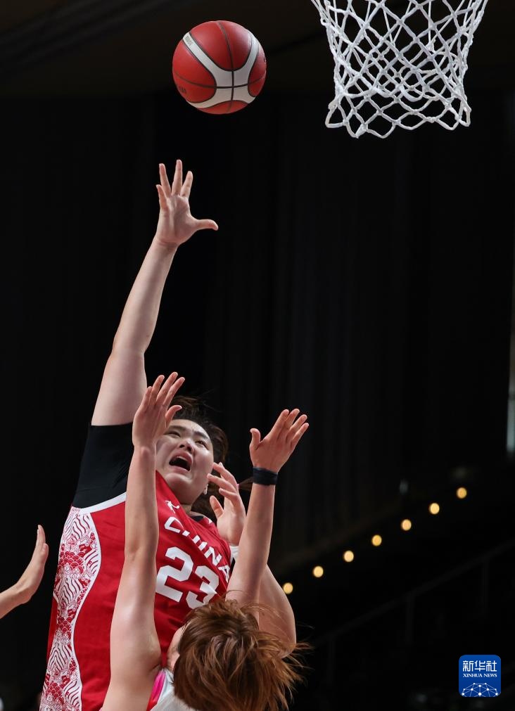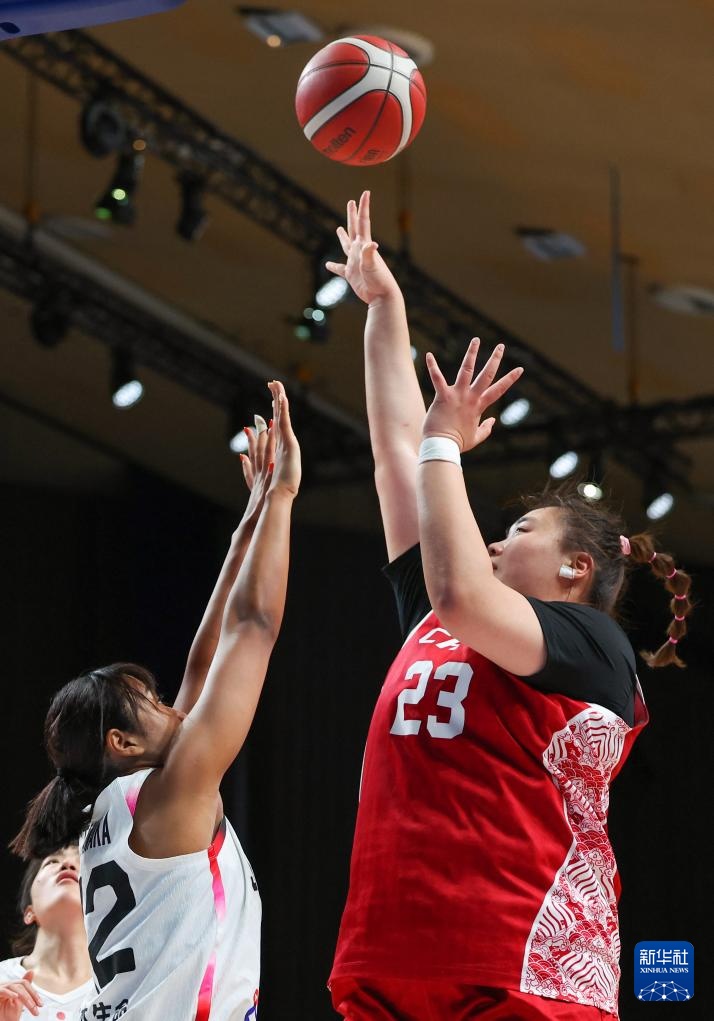 7月22日,中國隊球員曹博怡(上)在比賽中投籃。新華社記者 張帆 攝