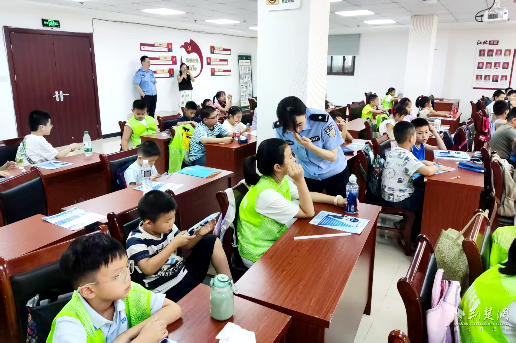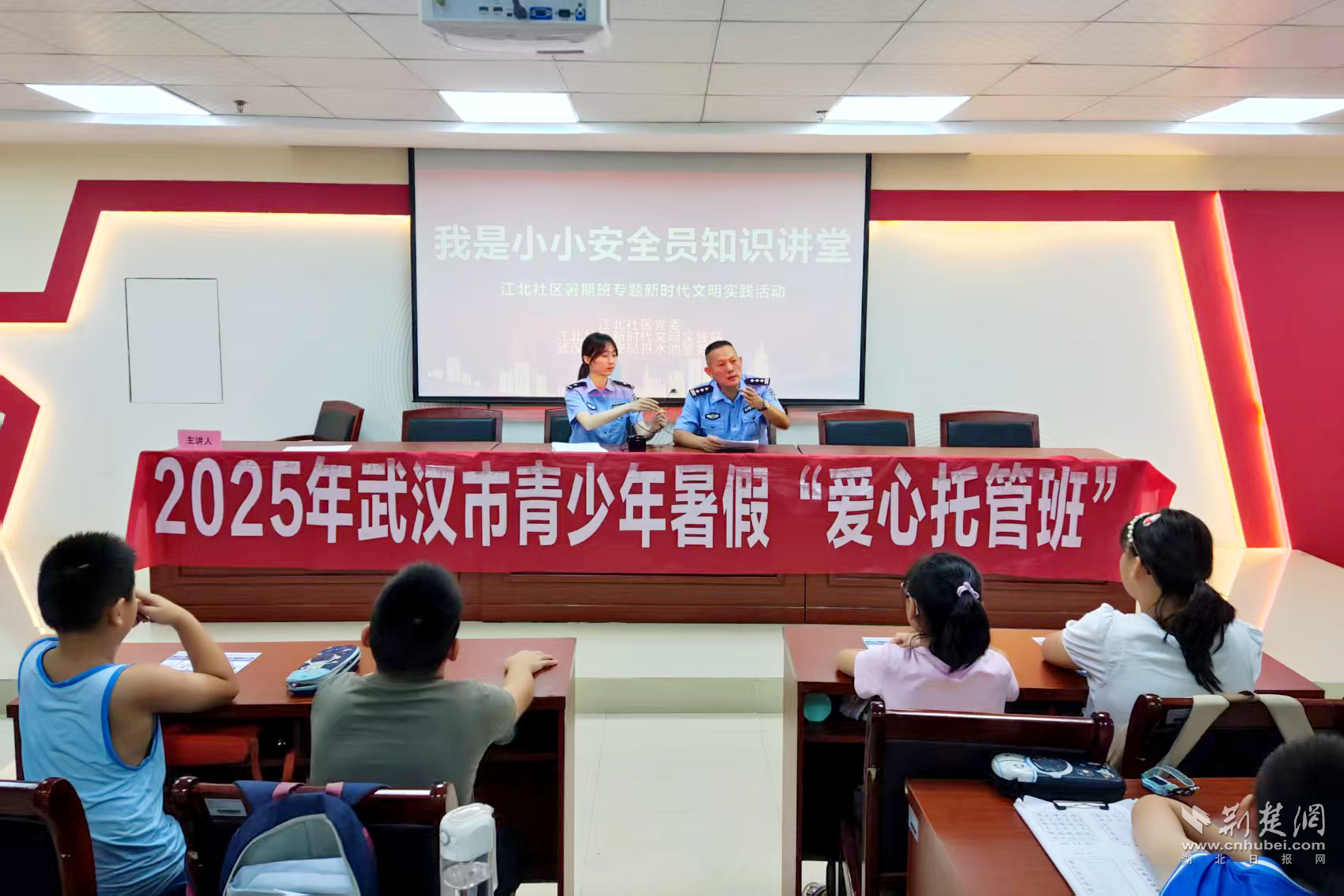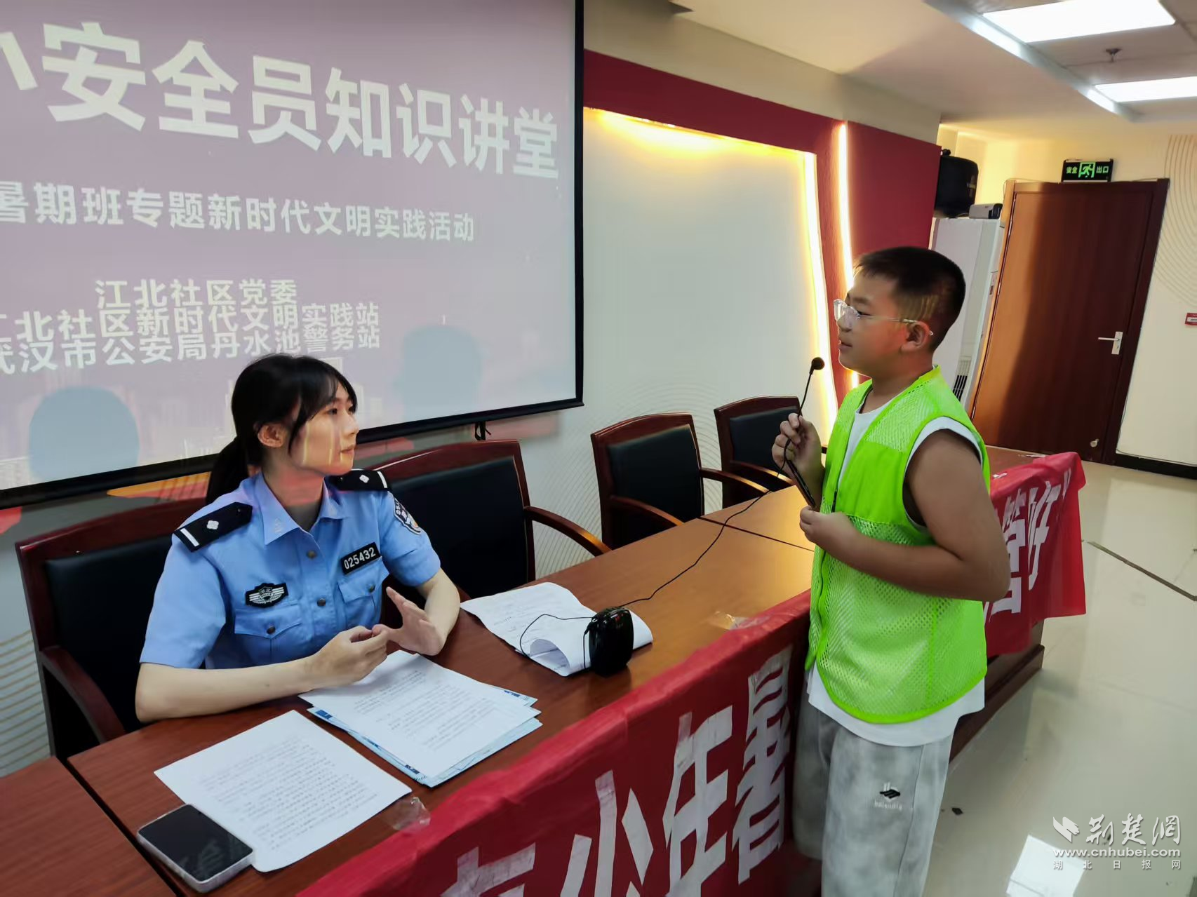 荊楚網(湖北日報網)訊(記者 白云 實習生 潘妍 通訊員 劉源 吳逸飛)7月22日上午10點,武漢市公安局江岸分局丹水池街派出所聯合江北社區共同開展了“青春護航·平安暑期”主題安全教育課堂,為轄區內的中小學生們送上了一份實用的“安全大禮包”,助力孩子們度過一個安全、愉快的暑假。