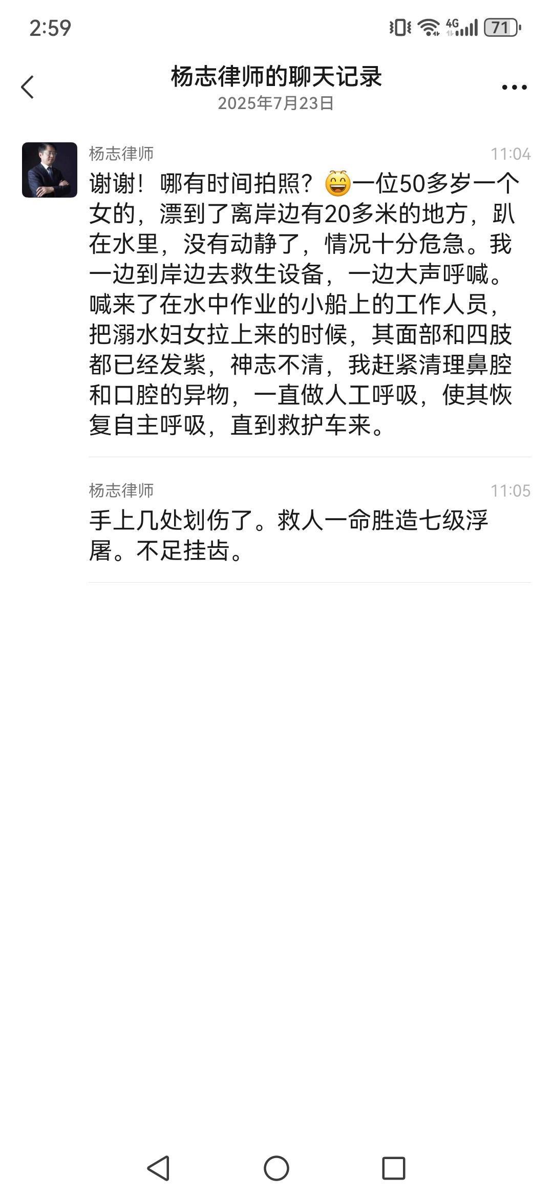 做完這一切后,楊志律師才默默收拾好衣物——此時人們才發現他的手上有幾處劃傷。沒有過多言語,他悄然離開現場。
