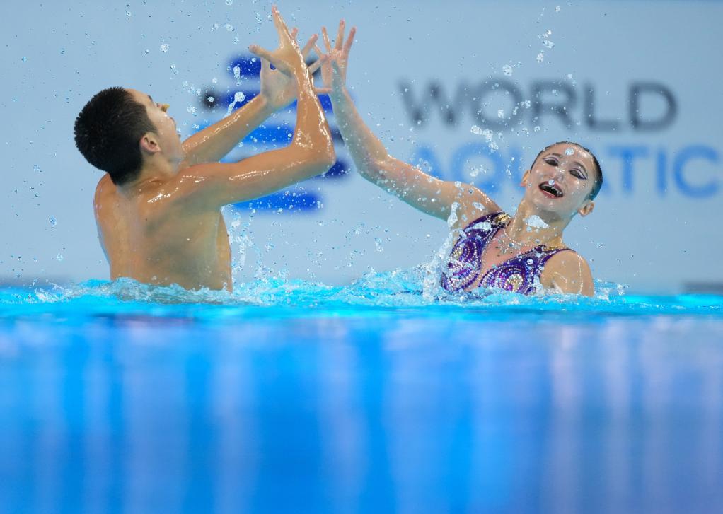 17歲的郭牧也和18歲的郭思彤都是首次參加游泳世錦賽。在不久前進行的花游世界杯總決賽上,兩人配合默契獲得亞軍。本次世錦賽,混合雙人技術自選強手如云,不僅有世界杯總決賽冠軍西班牙組合,由馬爾采夫領銜的來自俄羅斯的中立運動員組合更是實力強勁。