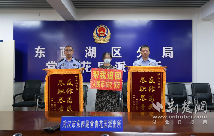 “資金已凍結,正在全力追查!”江漢區分局反詐中心民警斬釘截鐵的承諾,讓絕望中的陸女士重燃希望。6月23日,她專程手捧三面錦旗走進刑偵大隊,向民警張震寰、周志恒、張浩及其反詐團隊致謝。