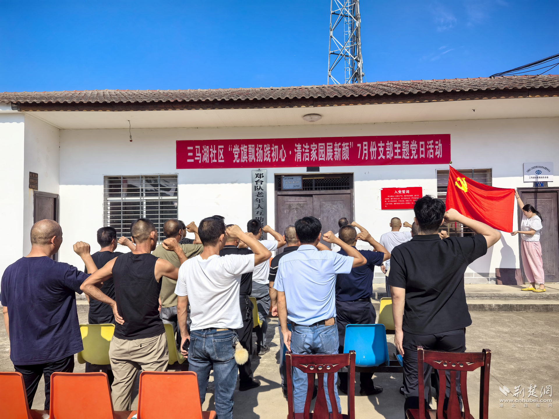 荊楚網(湖北日報網)訊(通訊員 田艷華)“我志愿加入中國共產黨,擁護黨的綱領,遵守黨的章程……”7月24日上午,江陵縣六合垸管理區三馬湖社區鄭臺隊群眾文化廣場響起莊嚴的入黨宣誓聲,鮮艷的黨旗迎風飄揚。20余名黨員與農戶們圍坐一起,一場別開生面的支部主題黨日屋場院子會,在蟬鳴與微風的合奏中開啟。