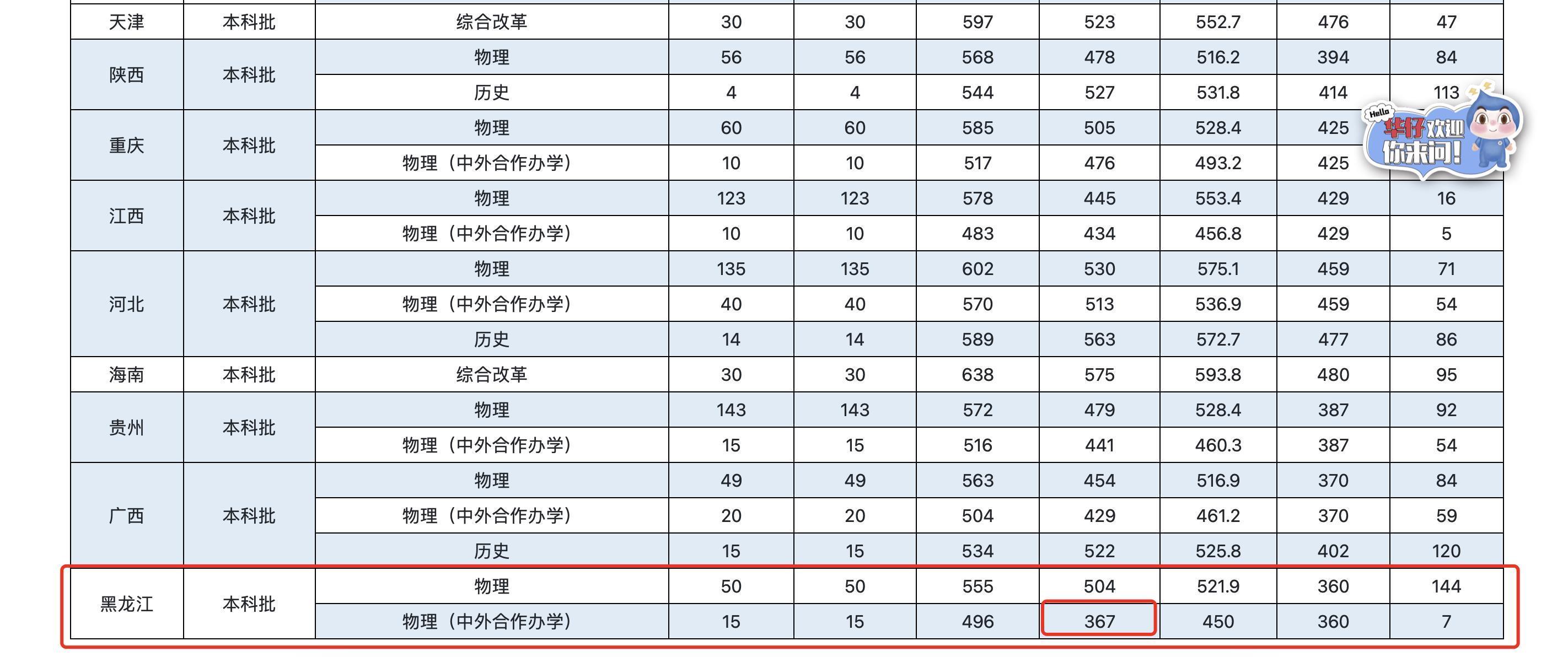 根據黑龍江省招生考試院發布的2025年普通高校招生普通本科批平行志愿投檔分數線(物理類),華北水利水電大學物理類第001組(不限)中外合作辦學科類,在黑龍江省的投檔分數為367分。