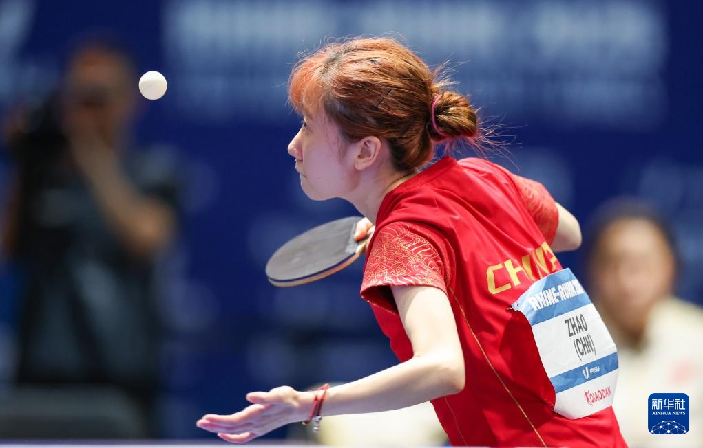 當日,在德國埃森進行的2025年萊茵-魯爾世界大學生夏季運動會乒乓球女單決賽中,中國選手趙尚4比0戰勝中國臺北選手黃愉倢,獲得冠軍。