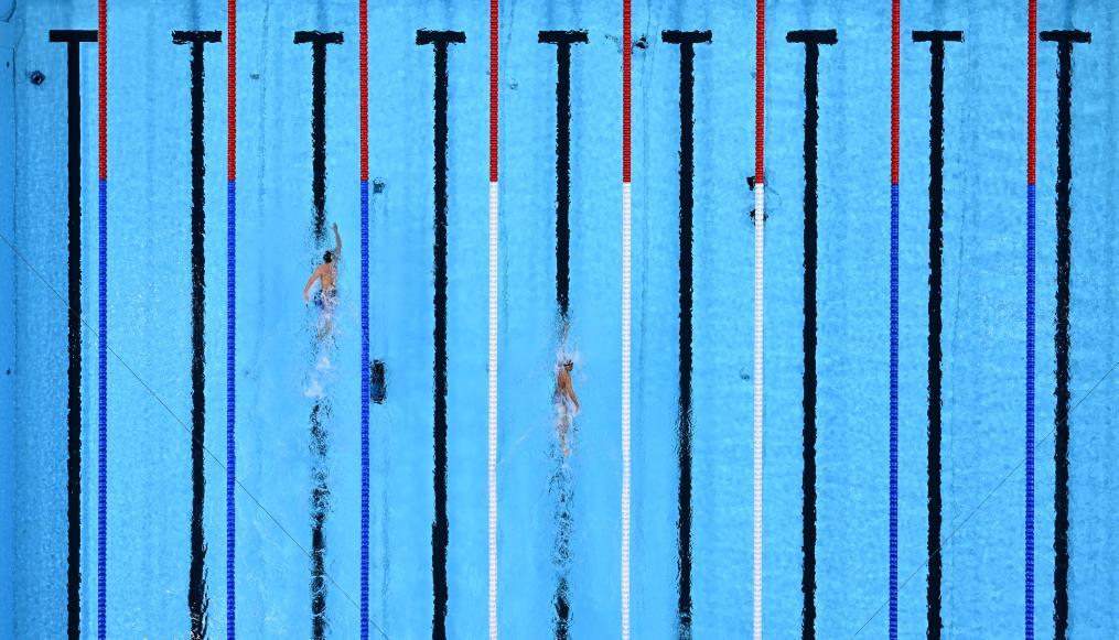 資料:圖為2024年8月4日巴黎奧運會的一場游泳比賽畫面。新華社記者 夏一方 攝