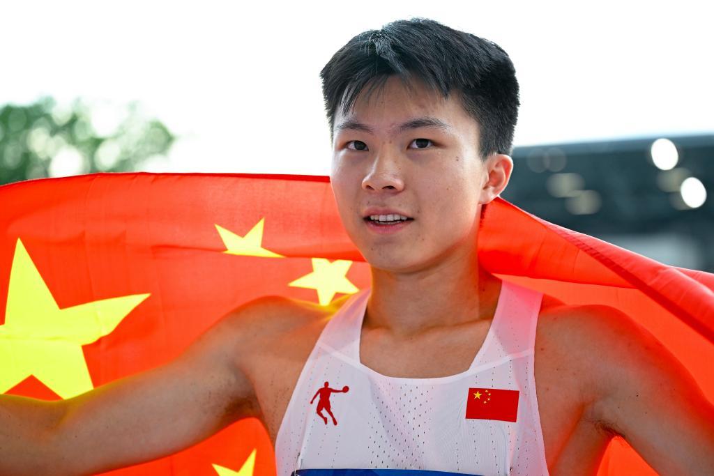 7月24日,舒衡在比賽后慶祝奪冠。 新華社發(fā)(烏爾里希·胡夫納格爾攝)