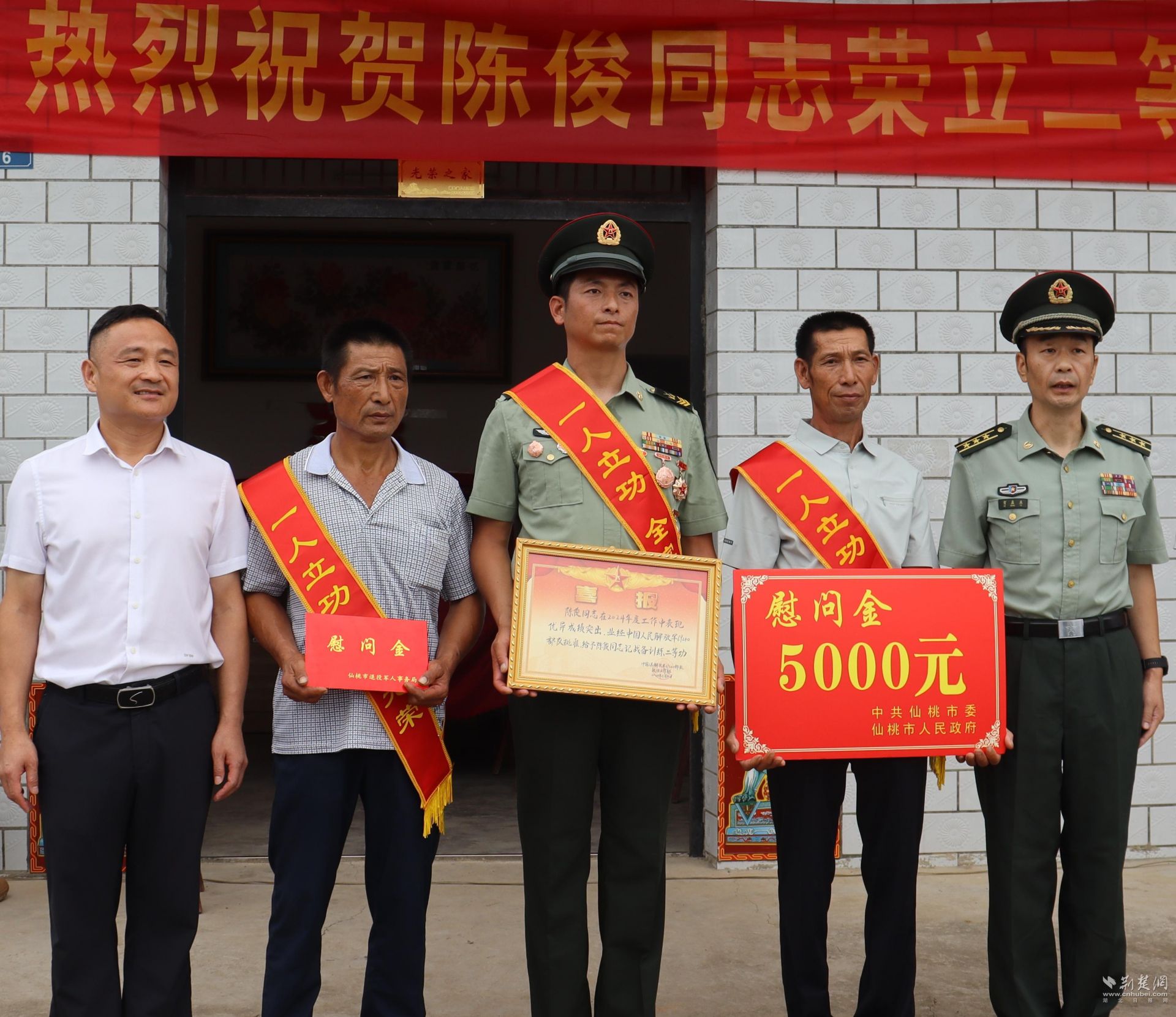荊楚網(wǎng)(湖北日報網(wǎng))訊(通訊員 常夢星)鞭炮齊鳴賀英雄,鄉(xiāng)音滿巷迎功臣。7月23日上午,仙桃市退役軍人事務(wù)局、市人武部、西流河鎮(zhèn)組成的送喜報隊(duì)伍帶著“二等功臣之家”牌匾和慰問金,走進(jìn)西流河鎮(zhèn)周壕村陳俊家中,舉辦簡樸而隆重的表彰儀式。