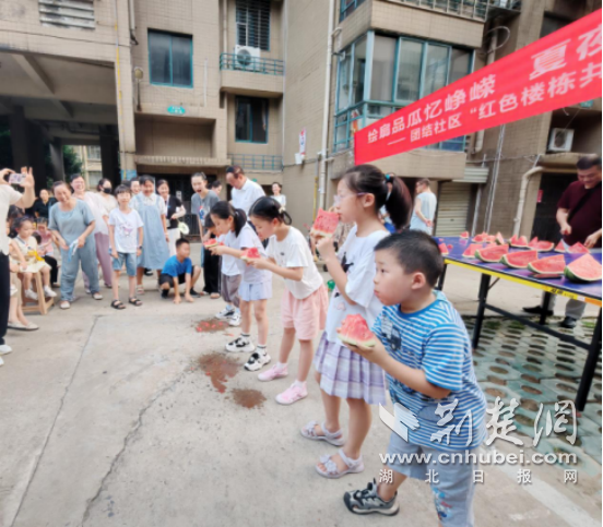 荊楚網(湖北日報網)訊(通訊員 張盼)盛夏蟬鳴,晚風送爽。7月24日晚,荊門市東寶區龍泉街道團結社區凱凌紫薇苑小區水池旁熱鬧非凡,一場以“繪扇品瓜憶崢嶸,夏夜觀影話清涼”為主題的納涼晚會在此溫情上演。社區居民、工作人員與“紅色樓棟共治聯盟”成員百余人歡聚一堂,在趣味互動中傳遞鄰里溫情,在紅色氛圍中厚植家國情懷,共同度過了一個難忘的夏夜。