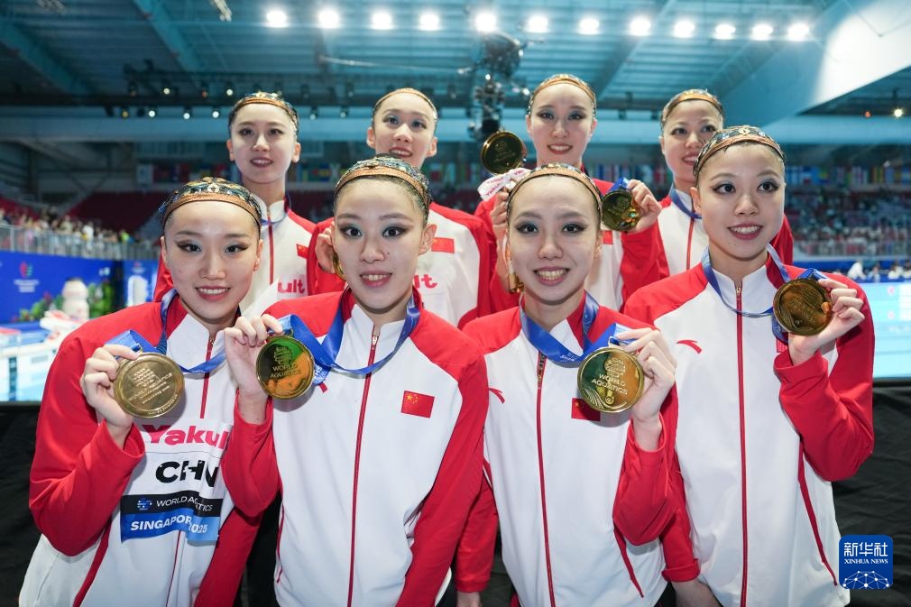 當日,在新加坡舉行的2025年世界游泳錦標賽花樣游泳集體技巧自選決賽中,中國隊奪得冠軍。