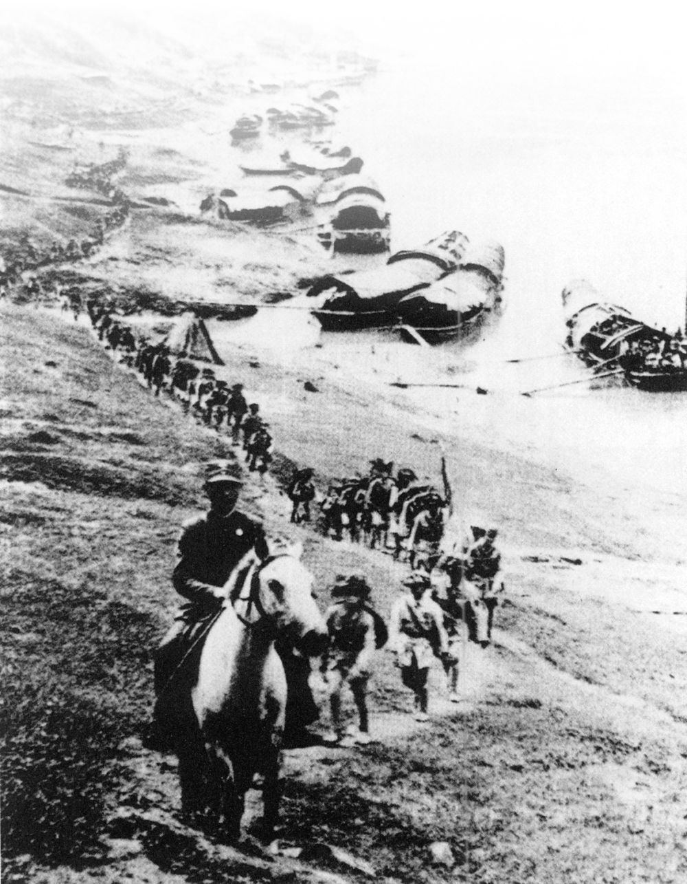 圖為鄂西石牌保衛戰中,中國軍隊渡過漁洋河向漁洋關挺進的場面。 湖北省檔案館 供圖