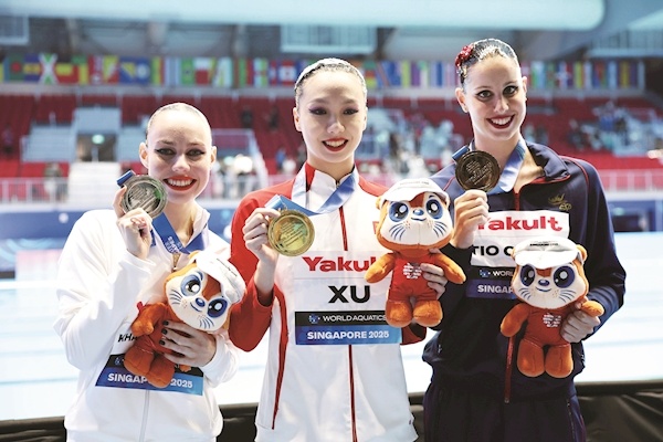 7月25日晚,2025年新加坡游泳世錦賽花樣游泳項目進行了最后一場比賽,集體技巧自選決賽,最終,中國隊奪得冠軍。自此,中國花游隊以包攬全部3枚集體項目金牌、總計獲得4金3銀的成績完成了本屆世錦賽之旅,位列金牌榜第一。
