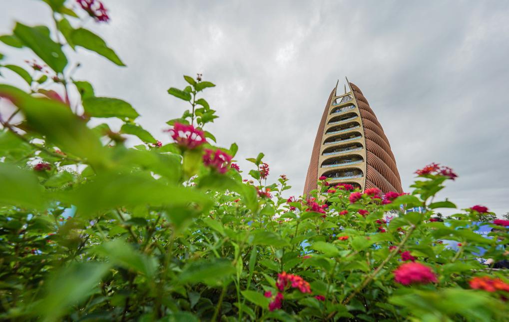 ↑成都大熊貓繁育研究基地觀光瞭望塔(2025年7月26日)。新華社記者 丁增尼達 攝