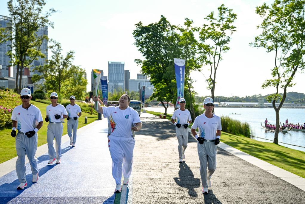 ↑2025年7月26日,火炬手李雯雯在傳遞火炬。新華社記者 馮開華 攝