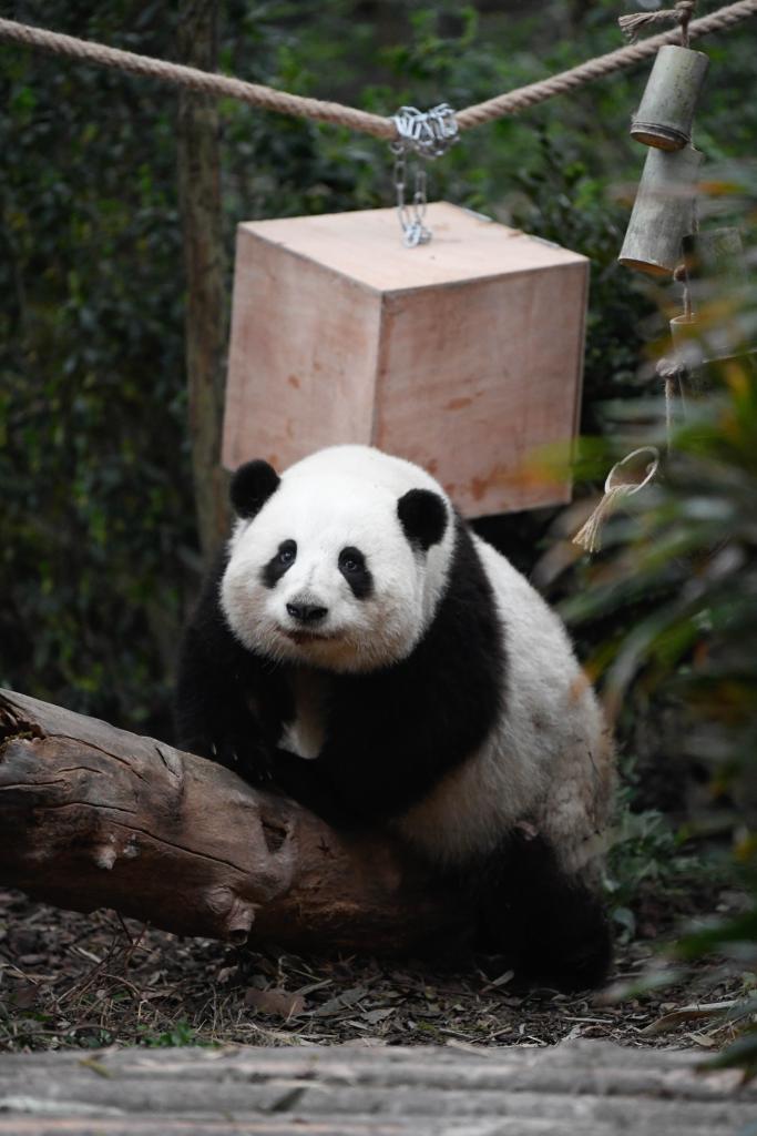 ↑大熊貓“花花”在成都大熊貓繁育研究基地玩耍(2023年3月23日攝)。新華社記者 胥冰潔 攝