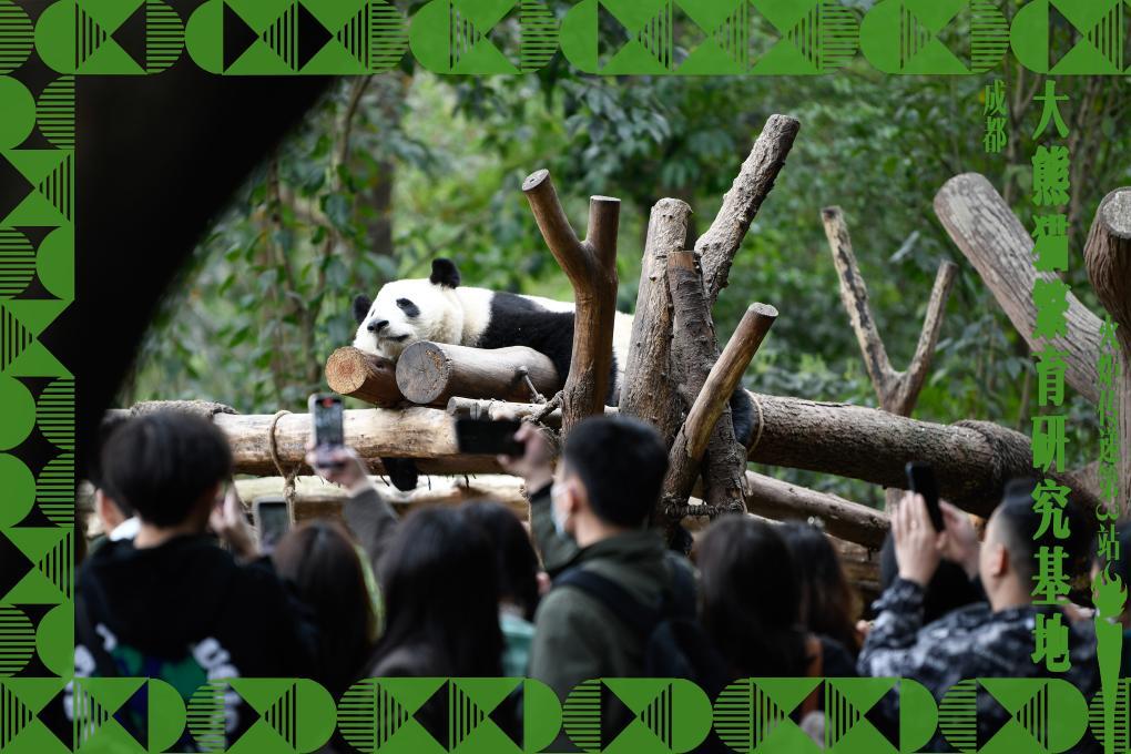 ↑在成都大熊貓繁育研究基地,游客在觀賞大熊貓(2023年3月22日)。新華社記者 胥冰潔 攝