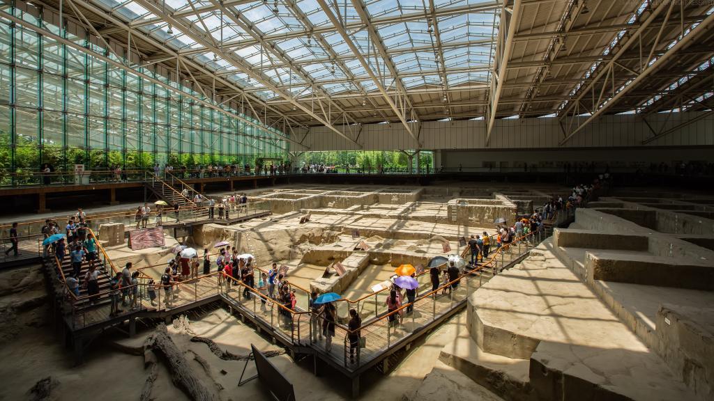 ↑游客在成都金沙遺址博物館考古遺跡館參觀(資料照片)。新華社發(金沙遺址博物館供圖)