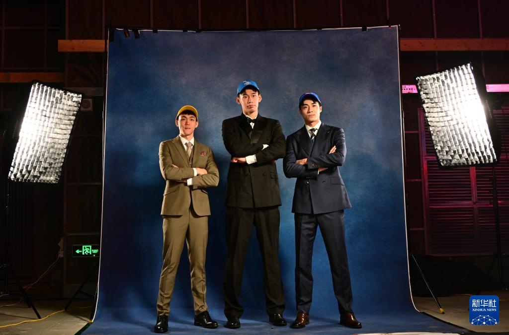 7月26日,來自清華大學(xué)的楊曦皓(中)、來自太原理工大學(xué)的杜智博(右)和來自全國男子籃球聯(lián)賽(NBL)廣西威壯俱樂部的龐崢麟在選秀大會上合影。