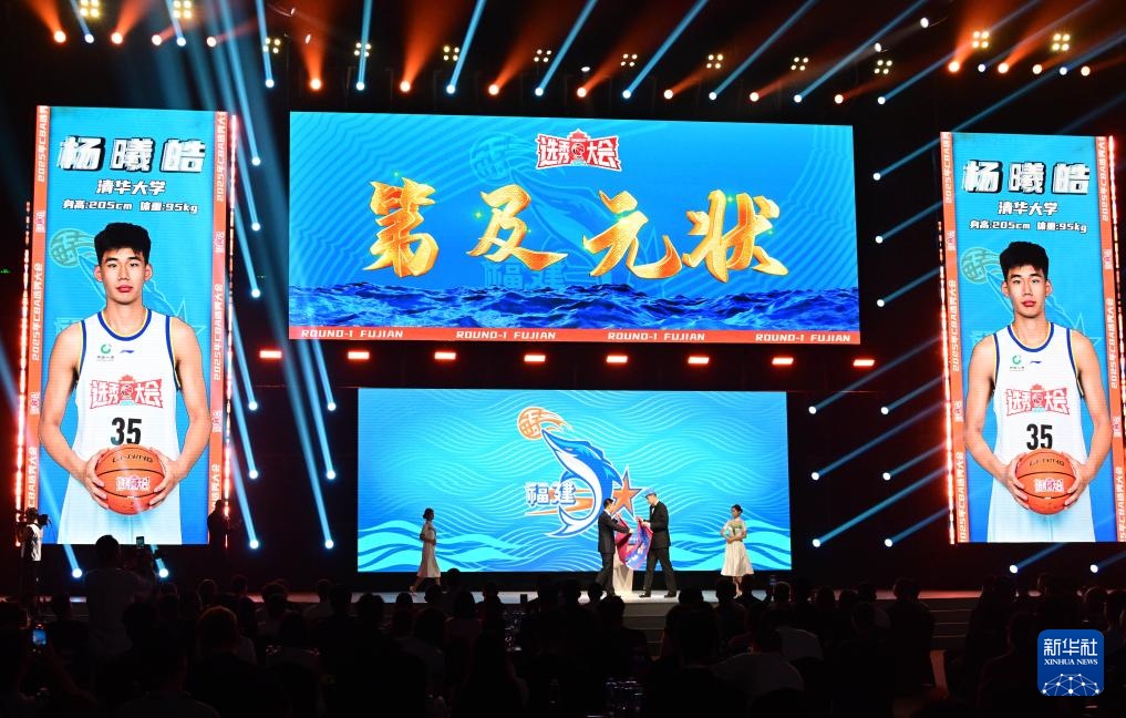 7月26日,來自清華大學(xué)的楊曦皓(右二)在選秀大會上。他在第一順位被福建潯興俱樂部選中。