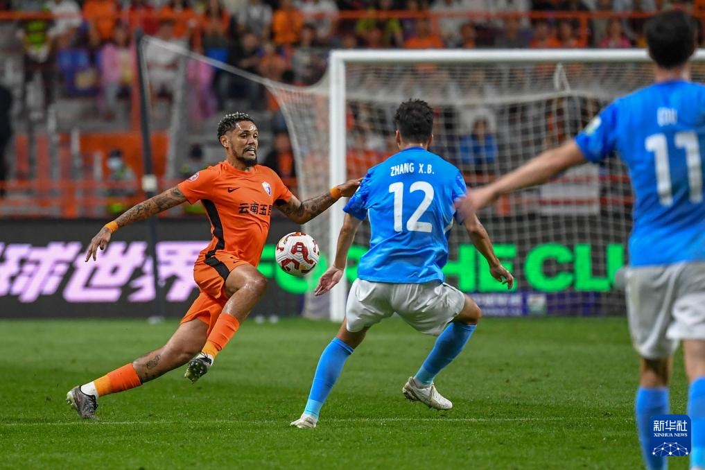 7月26日,云南玉昆隊球員佩德羅·恩里克(左)在比賽中進攻。