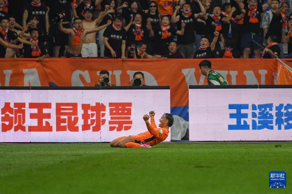 7月26日,云南玉昆隊球員迪力穆拉提·毛拉尼牙孜在進球得分后慶祝。