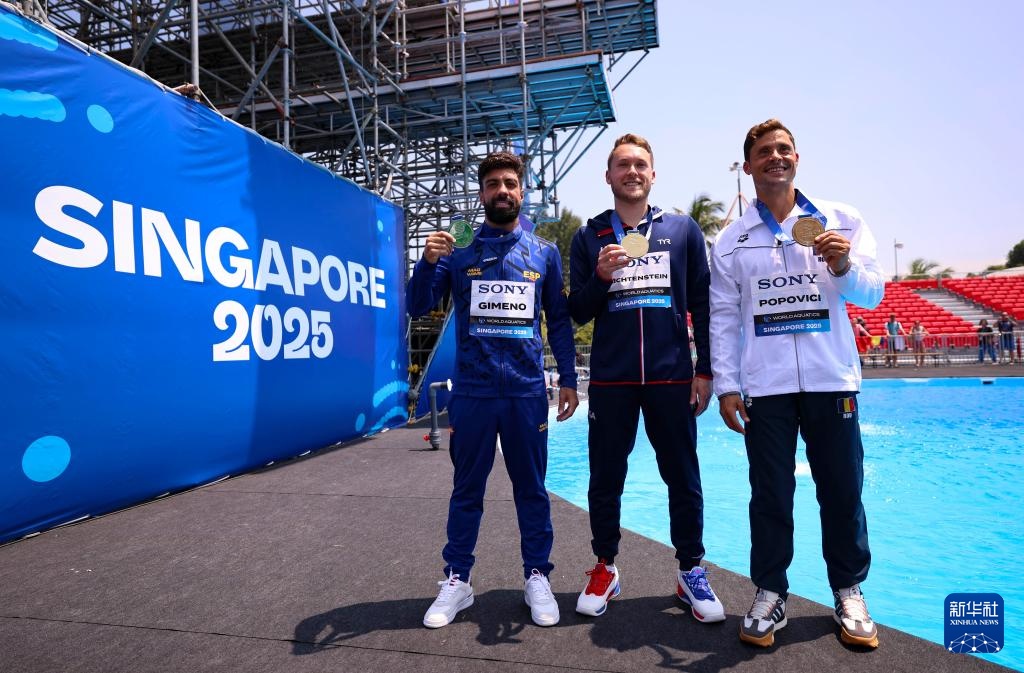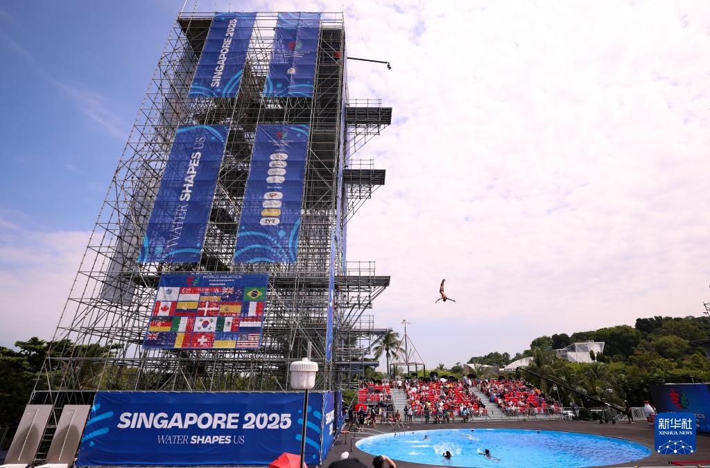 當日,2025年世界游泳錦標賽高臺跳水項目男子27米臺決賽在新加坡舉行。