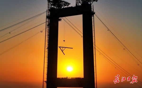 2024年11月28日7時17分,太陽剛露出水面,大橋施工人員趕在長江江豚出沒高峰時段之前錯峰施工。