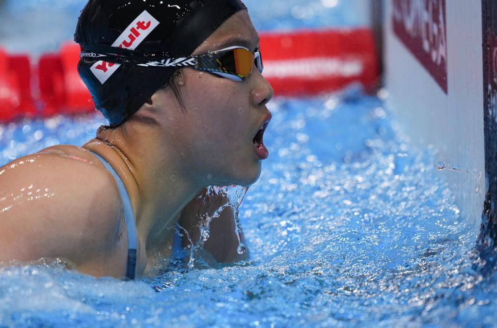 ↑7月27日,中國(guó)選手于子迪在世界游泳錦標(biāo)賽游泳女子200米混合泳半決賽的比賽中。新華社記者 伍志尊 攝