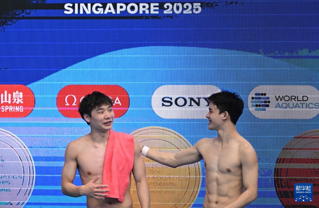當日,在新加坡舉行的2025年世界游泳錦標賽跳水男子一米板決賽中,中國選手鄭九源與嚴思宇分別獲得冠軍和季軍。