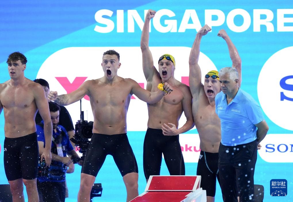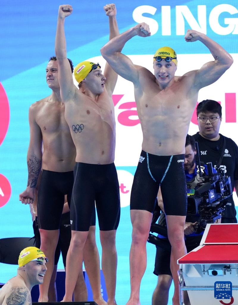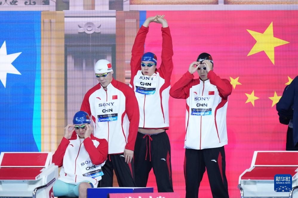 當日,2025年世界游泳錦標賽游泳男子4X100米自由泳接力決賽在新加坡舉行。