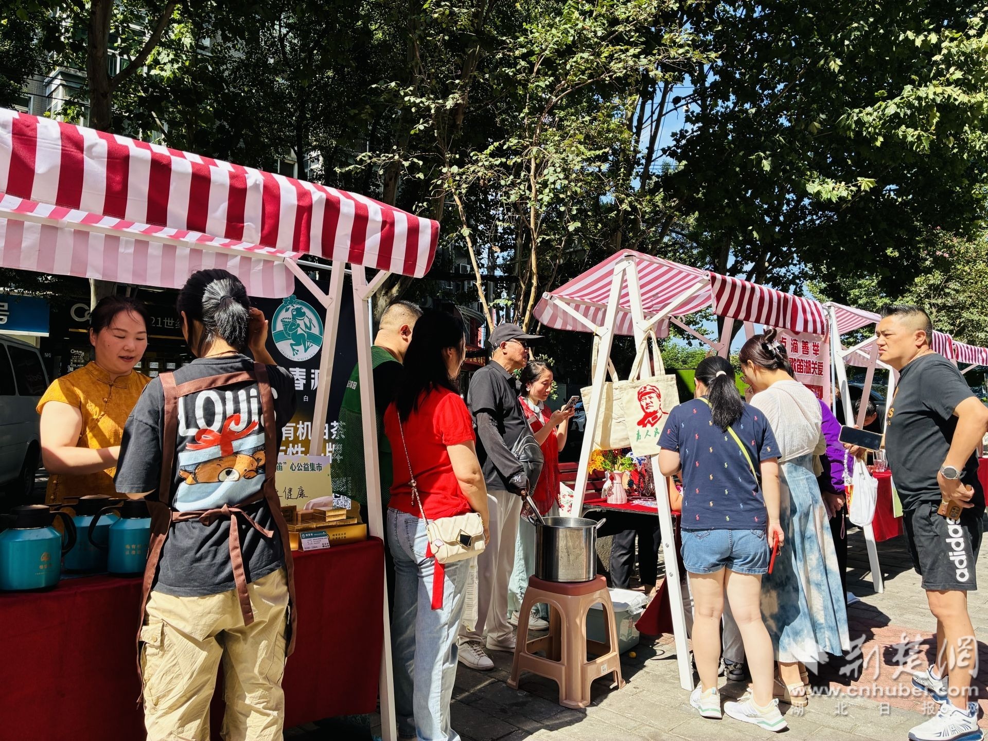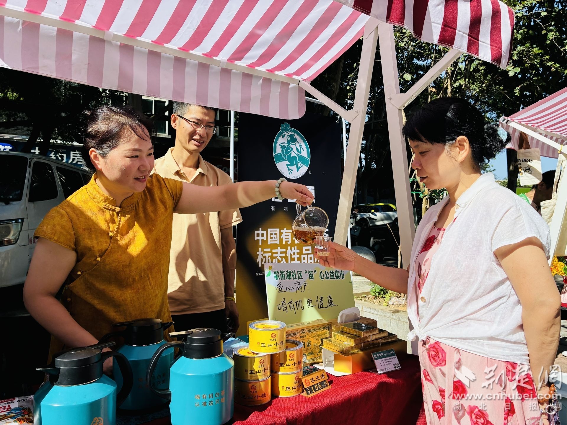 陸羽茶社的免費茶飲攤位前,居民王女士接過茶杯笑道:“免費茶湯驅(qū)散暑氣,這樣的集市有吃有玩,更有人情味。”