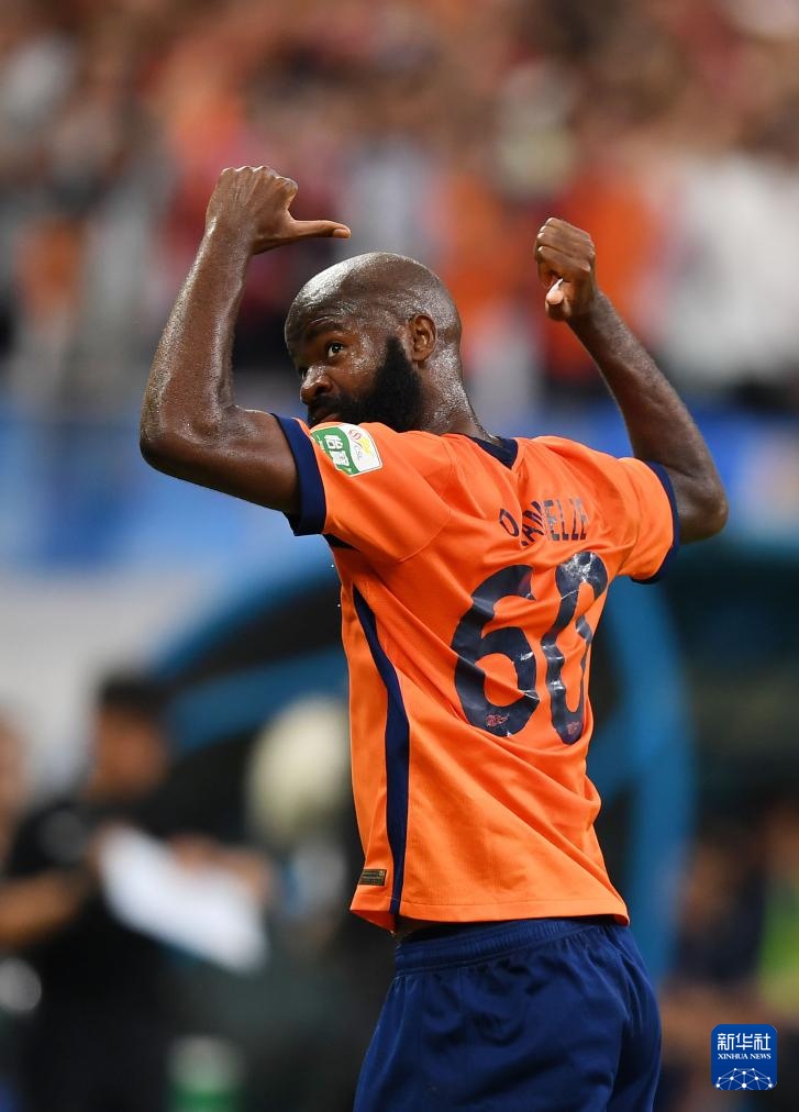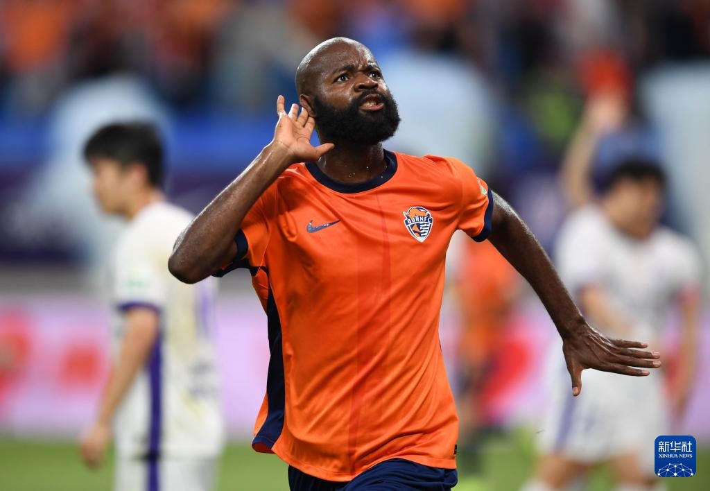 7月27日,青島海牛隊球員蘭克爾澤慶祝進球。新華社記者 李紫恒 攝