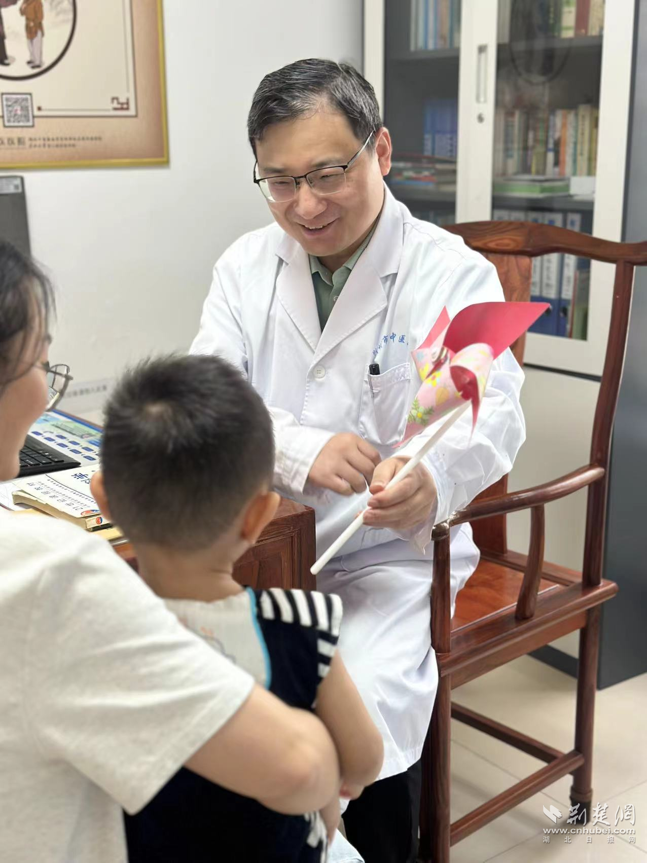 “寶寶是哪里不舒服啊?”診室內,唐其民掏出一枚彩色風車輕放入哭鬧患兒掌心。風車旋轉的瞬間,孩子哭聲停止,把脈,舌診,測溫一氣呵成。