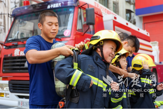 消防員現(xiàn)場指導(dǎo)孩子們實操體驗消防水槍、水帶出水作業(yè)。 通訊員 供圖