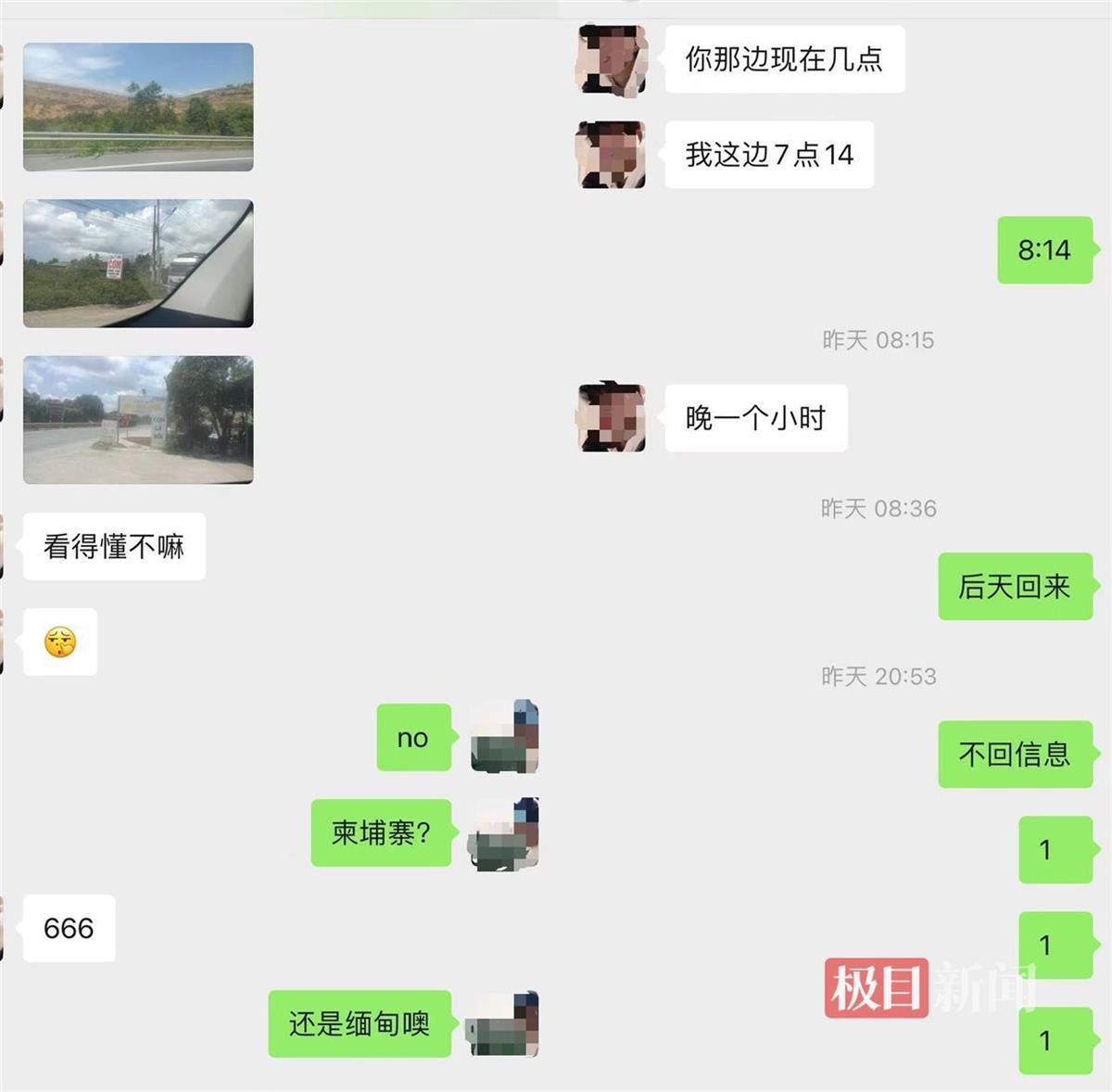 李先生提供的聊天記錄顯示,李尉標告訴堂姐自己在國外,要出去掙錢,一周內就回,還發來帶有外文標識的路邊的照片。李先生說,后來兒子就沒再回復堂姐消息,其堂姐隨后將情況告訴給了家人,“我得知情況就在麻江本地報了警,第二天也去了廣西防城港東興市報了警。”