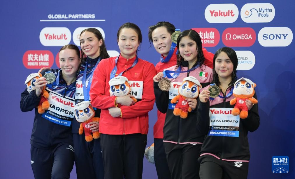 當日,在新加坡舉行的2025年世界游泳錦標賽跳水女子雙人3米板決賽中,中國組合陳藝文/陳佳奪冠。
