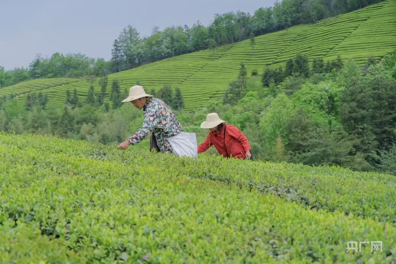 茶農在宜紅生態茶園采摘茶葉(央廣網記者鄧子依 攝)