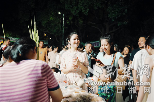 風味小吃區同樣熱鬧非凡,鹵味飄香的鴨脖鴨翅、滋滋作響的煎魚、手工制作的冰涼粉等攤位前排起長隊。主辦方特別設置的免費綠豆湯供應點成為最受歡迎的“清涼驛站”,工作人員不間斷為市民盛上解暑飲品。“這里既能買到新鮮地道的漳河特產,又能品嘗各地小吃,比單純逛街有意思多了!”前來游玩的市民朋友拎著剛買的黃桃和蓮蓬,滿意地說道。