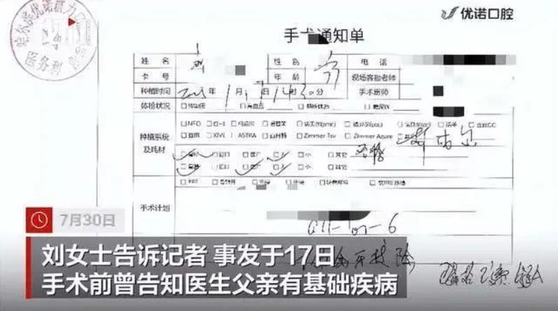 近日,哈爾濱市民劉女士投訴稱,她77歲患有高血壓、糖尿病、冠心病并植入5個心臟支架的父親,于7月17日在哈爾濱市優諾口腔門診一次性被拔除12顆牙齒并種植6顆牙后,離開醫院僅幾十分鐘便突發不適、吐血,最終身亡。