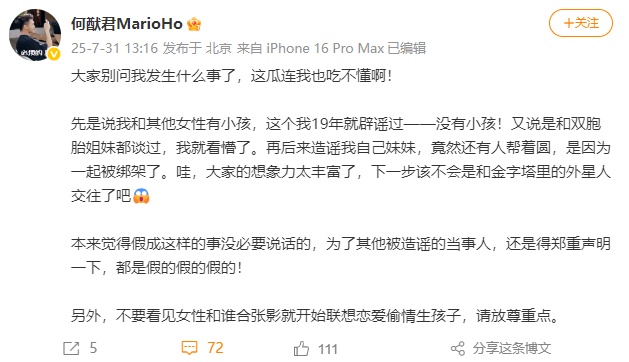 本來覺得假成這樣的事沒必要說話的,為了其他被造謠的當事人,還是得鄭重聲明一下,都是假的假的假的!