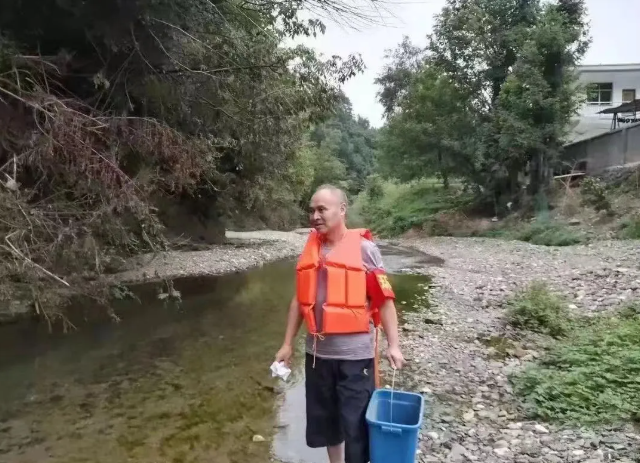 7月29日清晨,在陜西省漢中市寧強(qiáng)縣漢源街道漢水源村,村民王開強(qiáng)背著自制的簡(jiǎn)易工具包,沿著河道開始了十多年如一日的義務(wù)巡河。