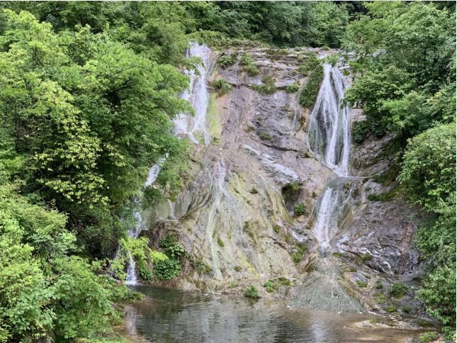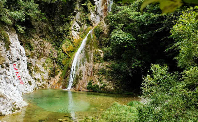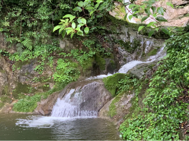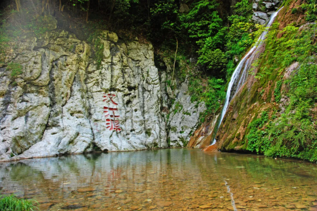 溪水從山崖傾瀉而下,匯為平靜的潭水。崔慧芬攝.jpg