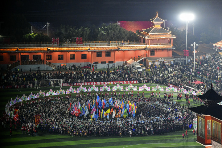 2025年1月4日,人們在“村超村晚”活動中表演非遺節目“多耶”。新華社記者楊文斌攝